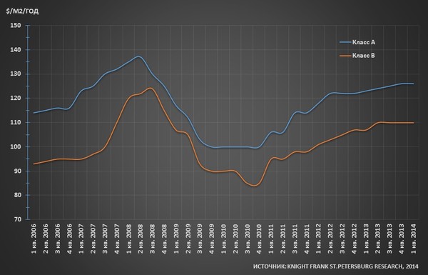 Динамика арендных ставок в БЦ Санкт-Петербурга